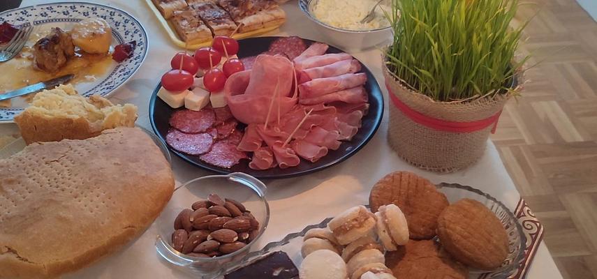 Pre liturgije, zamesi se testo od kojeg se peče pogača - česnica, u koju se stavi novčić. Iznosi se na na sto, gde je već postavljen svečani ručak, okreće se kao slavski kolač i lomi na onoliko delova koliko ima ukućana.