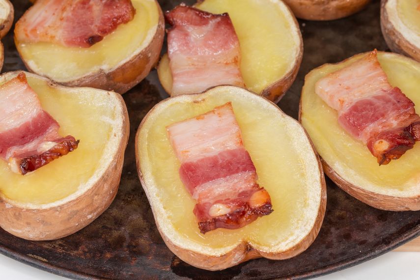 Po želji, pečeni krompir blago zarežite, izdubite sredinu i pomešajte je sa slaninom, sirom i pavlakom ili kajmakom. Napunite krompire i vratite u rernu još 10 minuta, dok se sir ne otopi.