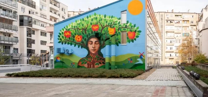 Kompozicija, oslikana na fasadi zgrade, "prikazuje drvo života čije krošnje nose simbole zdravlja, reciklaže, zajedništva i energije, odnosno vrednosti koje čine osnovu ekološke svesti i odgovornog ponašanja, dok se u pozadini prostiru motivi prirode, kuća i vetroturbine, koji simbolizuju harmoniju između čoveka i okruženja", navedeno je u saopštenju.