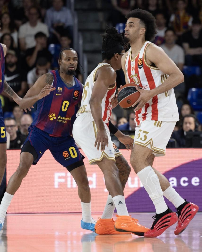 Crvena zvezda je završila sezonu u Evroligi, pošto je sinoć, u prvoj utakmici plej-ina, na gostujućem terenu izgubila od Barselone 72:80.