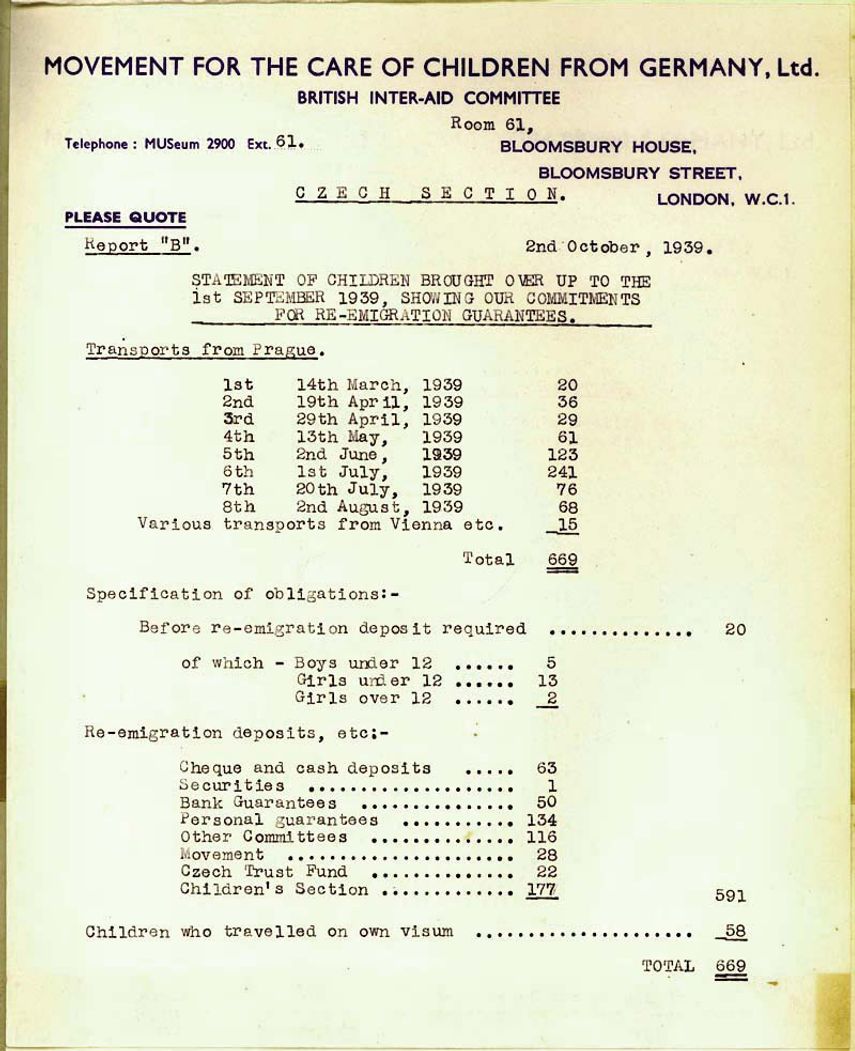 Posle Kristalne noći, novembra 1938. - prvog otvorenog ataka na Jevreje u Nemačkoj - Vlada Velike Britanije ublažila je imigracione propise i pristala da primi jedan broj dece iz Nemačke i Austrije. Program će postati poznat kao Kindertransport. Međutim, u njegovom dohvatu nije bila i Čehoslovačka.