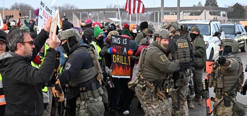 Demonstranti od jutros ispred federalne zgrade na obodu Mineapolisa, gde je baza za antiimigracionu operaciju ICE uzvikuju: "Dosta ICE!", "Odlazite nacisti!", "Dajte otkaze", "Hoćemo pravdu odmah!", a pripadnici granične federalne službe pokušavaju da ih odbace od kapije, prskaju ih biber-sprejom i bacaju na njih suzavac.