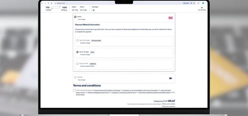 Putnici Lufthanse će biti u mogućnosti da dobiju pristup Klarna fleksibilnim rešenjima za plaćanje koje pokreće Adyen globalna infrastruktura namenjena plaćanju- prilikom rezervacija svojih putovanja.