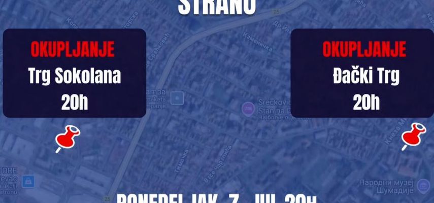 Poziv je objavljen na društvenim mrežama, a protest će biti održan na Trgu Sokolana i na Đačkom trgu ispred Prve kragujevačke gimnazije.