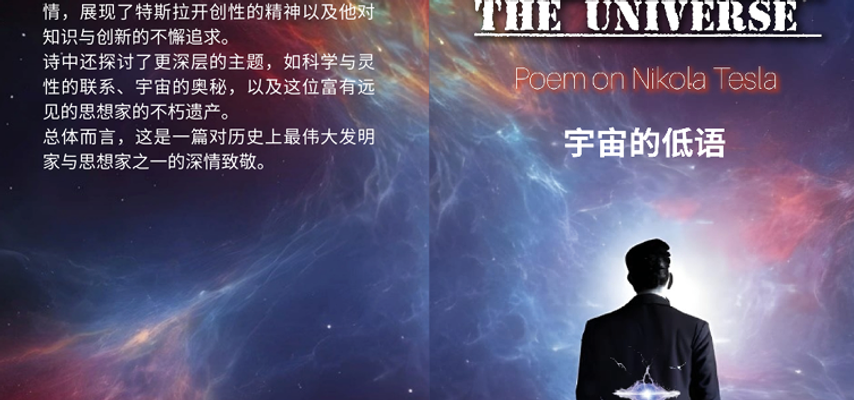 Međunarodno priznata pesnikinja i digitalna umetnica Ana Stjelja najavljuje kinesko izdanje svoje poznate knjige „Šapat univerzuma”, poetskog omaža velikanu svetske nauke Nikoli Tesli.